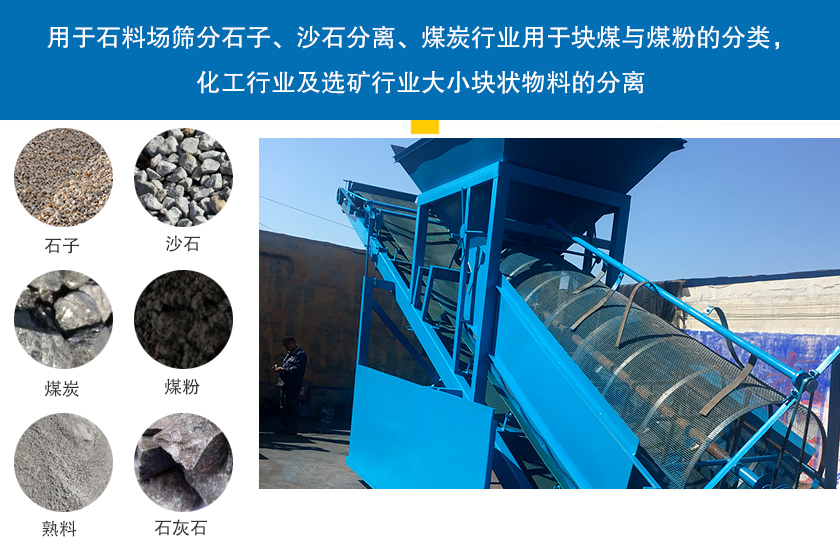 主要用于石料場篩分石子、沙石分離’煤炭行業用于塊煤與煤粉的分類,化工行業及選礦行業大小塊狀物料的分離。