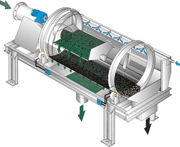 大型滾筒篩沙機簡稱大型滾筒篩,其篩網面積更大,能夠滿足大生產篩分作業的需要,主要用于中、細粒物料的分級篩分,采用滾動篩分的原理可防止物料堵塞,筒內安裝有清網裝置,可以對篩面進行清潔,提高篩分效率和產能,根據物料篩分難易程度可設計為有軸和無軸兩種,根據外形可以設計為敞開式或封閉式(一般情況下采用封閉式)。